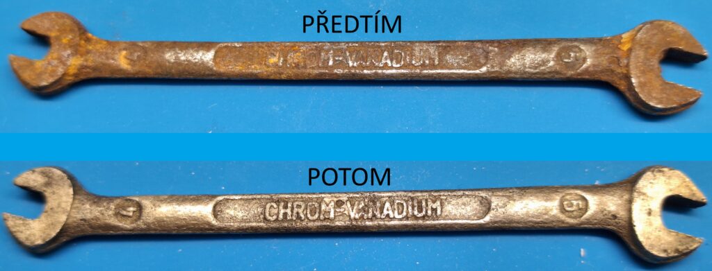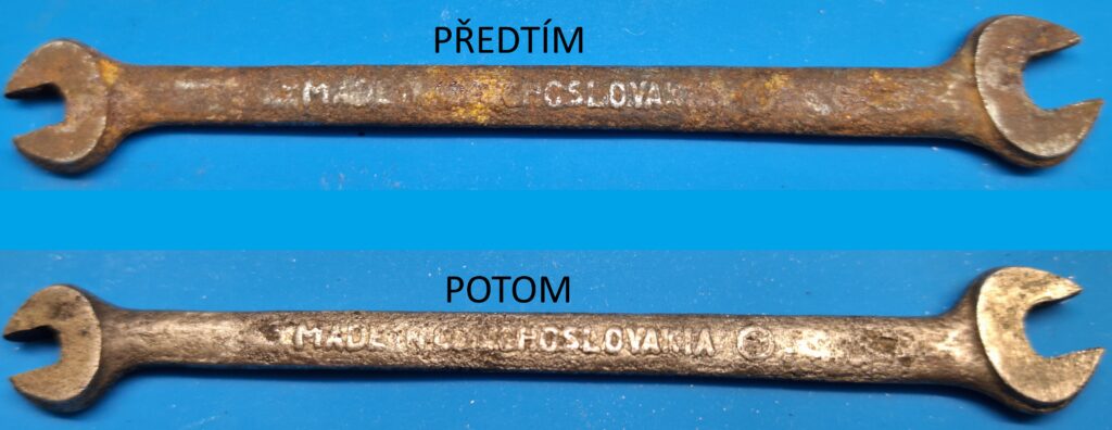 Jak je vidět na porovnávacích fotkách tak rez plně zmizela (nechal jsem to běžet 2 hodiny) a zůstal jen holý kov. Ještě si s klíčem zkusím trochu pohrát aby vypadal o něco lépe. Ale to bude na další článek.