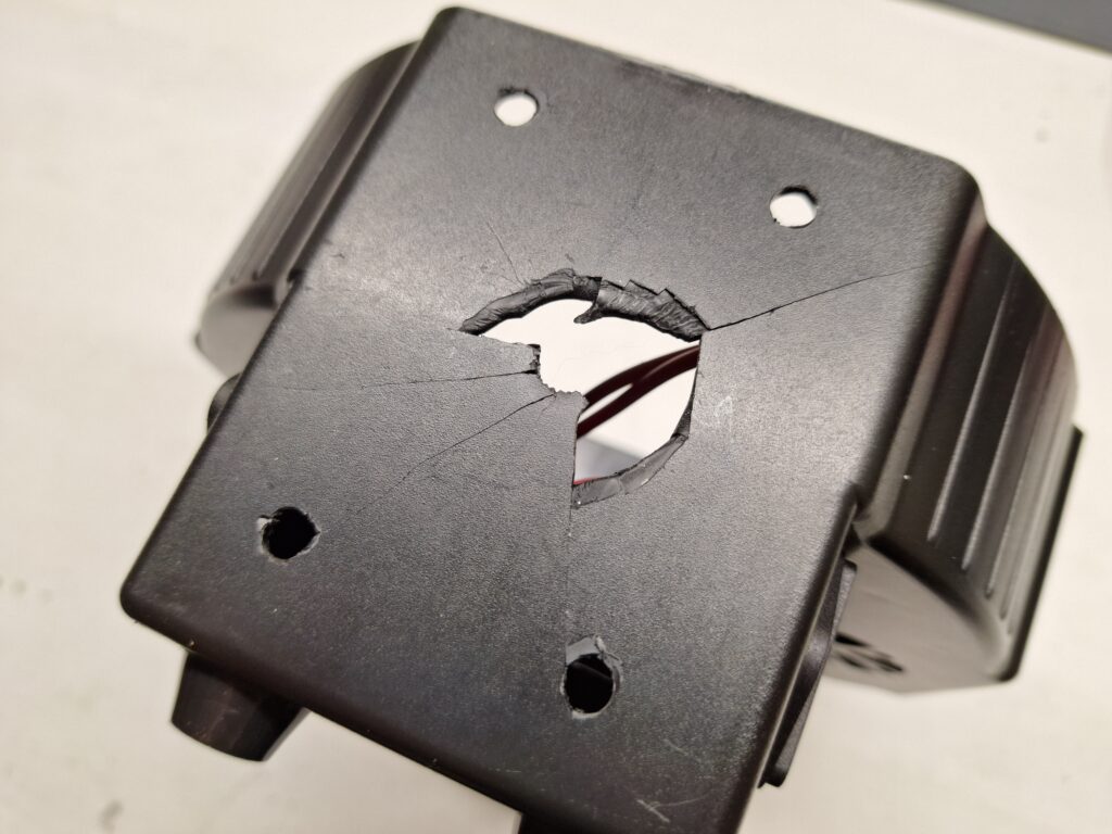 Dostal jsem za úkol opravit LED světlomet, ze kterého se vytrhl kovový závěs z plastového těla. V plastu po něm zůstala díra a množství prasklin, co teď s tím?