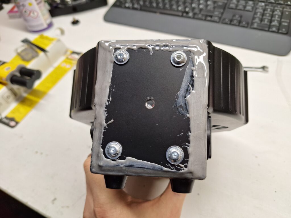 Oprava dopadla podle mých představ. Do budoucna bych zvolil šrouby se zapuštěnou hlavou a úplně je skryl – výsledek by pak působil ještě čistěji. Uvědomuji si drobné nerovnosti a ne zcela dokonalý povrch, ale pro zamýšlené použití je to plně dostačující. Pro perfektní vzhled by bylo nutné finální dotmelení a několik kol jemného broušení, to si však nechám na projekty, kde na vzhledu opravdu záleží.