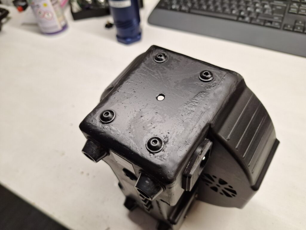 Nakonec jsem celou záplatu přelakoval, aby byla oprava chráněná a vizuálně sjednocená se zbytkem těla světlometu.